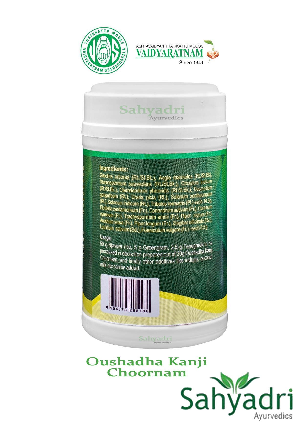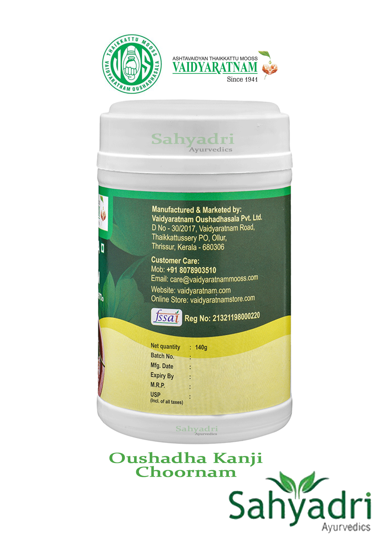 Vaidyaratnam Oushadha Kanji Choornam is a traditional herbal blend designed to prepare nourishing oushadha kanji, a wellness porridge rooted in Kerala’s Ayurvedic heritage. Crafted with carefully selected herbs, this Ayurveda kanji choornam supports digestion, metabolism, and overall vitality—making it a wholesome addition to your daily routine. Ideal during seasonal transitions, especially monsoon, it offers a comforting way to promote balance and rejuvenation. Easy to prepare and rich in time-honored ingredients, Vaidyaratnam’s formulation helps support a healthier lifestyle naturally, aligning with the wisdom of classical Ayurveda in a modern, convenient form. Suitable for all age groups.