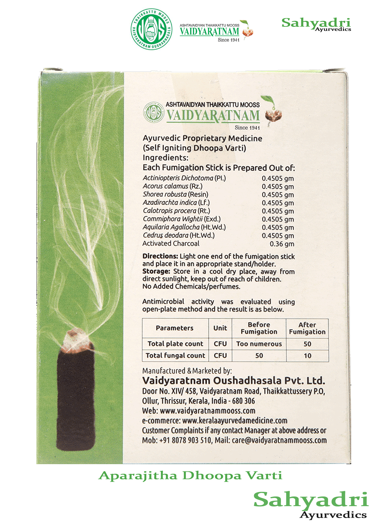 Dhoopana in all types of Fevers, Bacteriostatic action